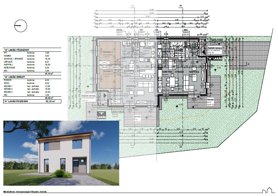 Amonstone ikerház III. Harmadik ikerház projektünk az Aranyossziget-villaparkban, 150 hektár ős fás erdő közepén, látványtóval, játszótérrel, közeli Duna-parttal, zárt lakóközösségben, a 1666-os hrsz-u telken kerül kivitelezésre! Az "A" lakáshoz tartozó telekhányad: 257.5 nm Telekhányad + kulcsrakész kivitelezés: 76.996.450.- Birtokba adás: 2026. december Felépítmény: A első 2 szintes ikerház a modern életvitelhez igazodva termálvizes fűtésrendszerrel, a legkorszerűbb technológiák beépítésével kerül megépítésre. A ház kialakításánál nagy figyelmet fordítottak a praktikus elrendezésre, a modern designra és a kényelmes szobaméretekre. Elosztás 96 nm-en: fsz.: háztartási helyiség, kamra, konyha-étkező, lépcső, nappali, szélfogó, wc emelet: fürdő, közlekedő, 3 hálószoba, wc A kulcsrakész kivitelezés szükséges anyagok kiválasztásánan online katalógusunk, illetve belsőépítész kollégánk segítségével otthona kényelméből van lehetőség! Amennyiben ezt vagy ettől eltérő elrendezésű, stílusú, méretű ingatlant szeretne, akkor leendő otthonát megtervezzük, kivitelezzük és.............. akár be is rendezzük! A részleteket beszéljük át személyesen! Időpont egyeztetés végett a hirdetésben megadott telefonszámon várom hívását!
